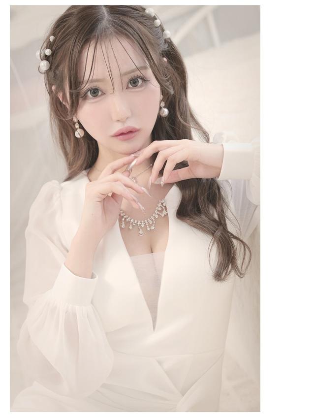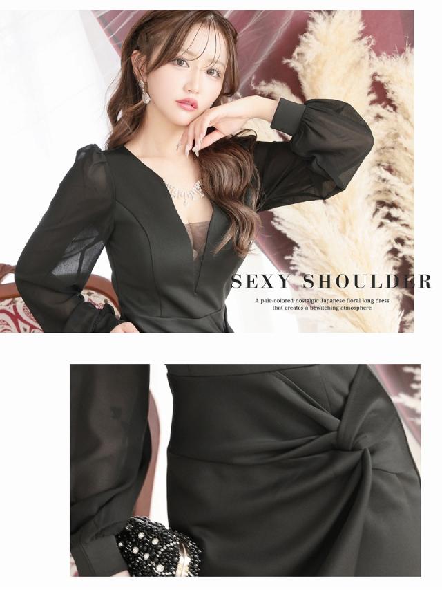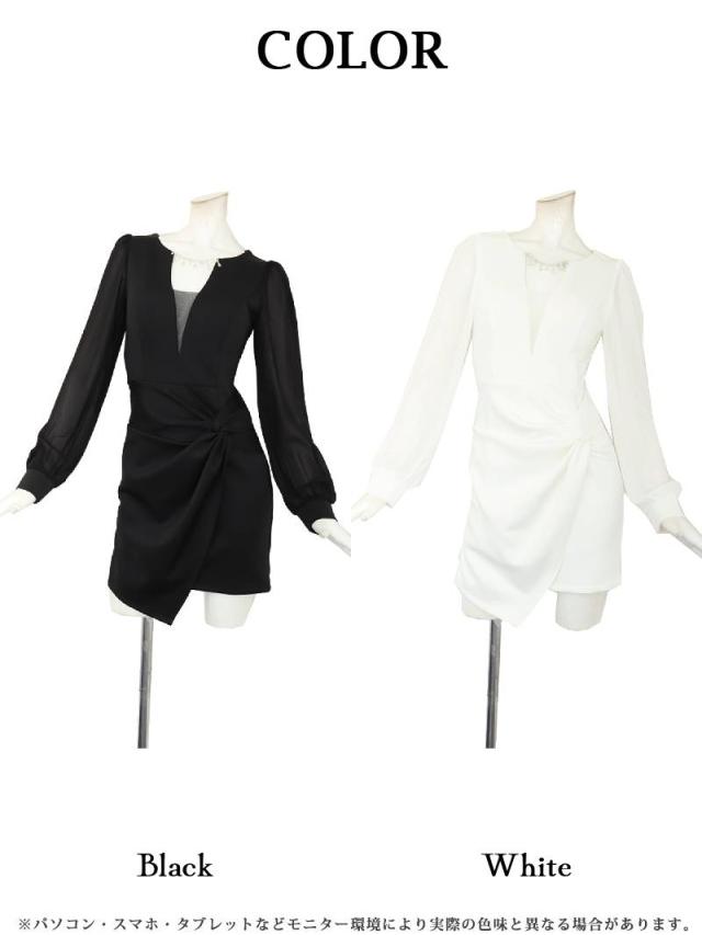一部予約販売 ミニドレス RyuyuChick シフォン袖 長袖 谷間 ギャザー セクシー キャバ ドレス キャバドレス ミニ