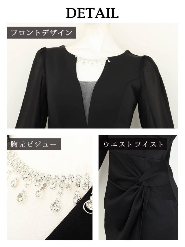 ☆胸元ビジューとギャザーがバストを強調して谷間魅せをサポート