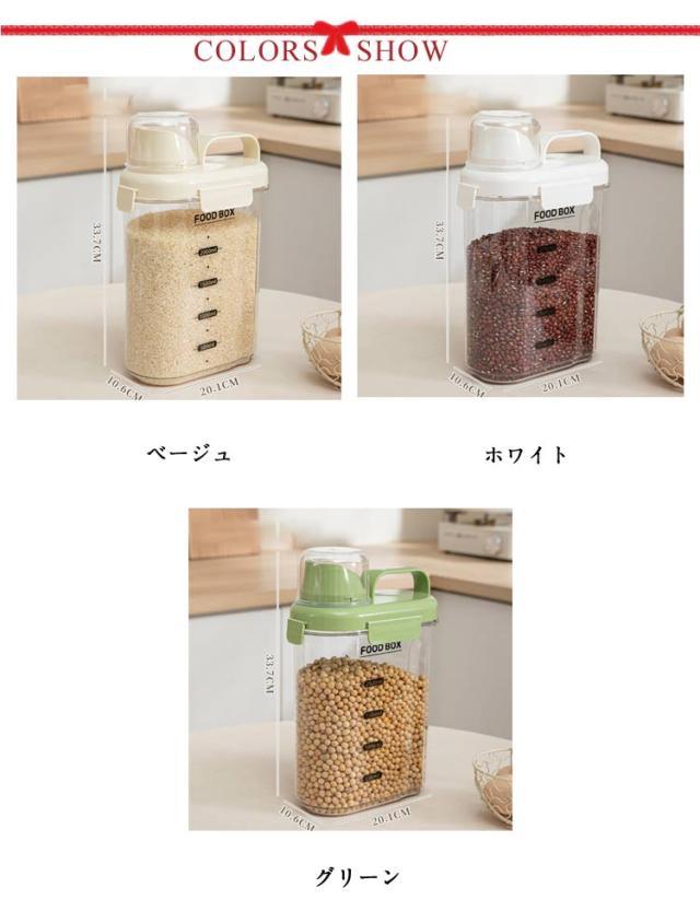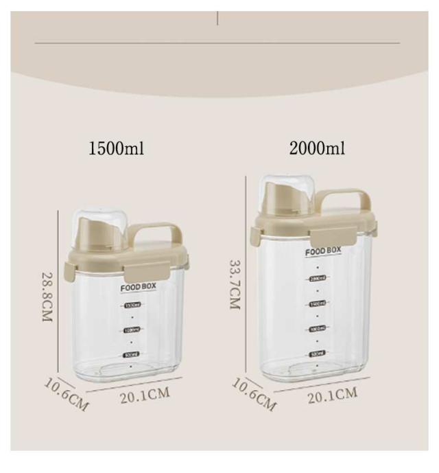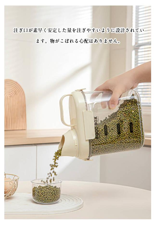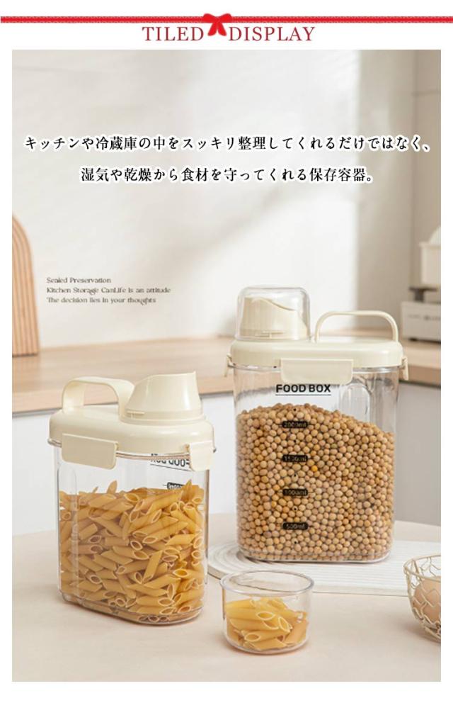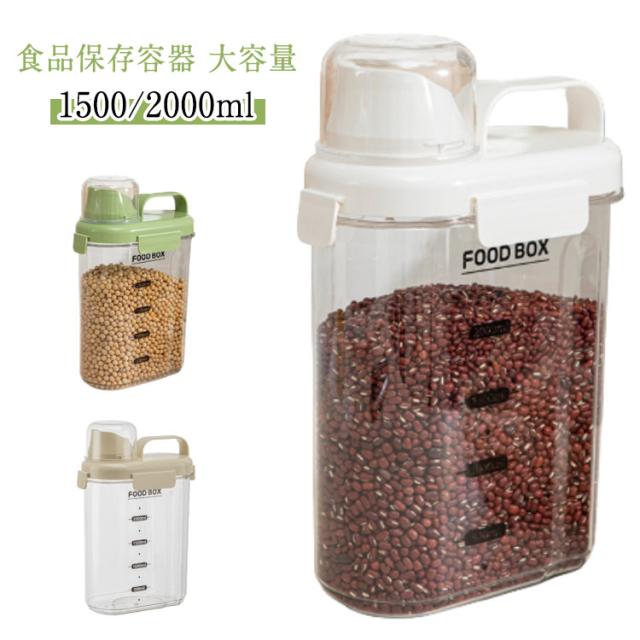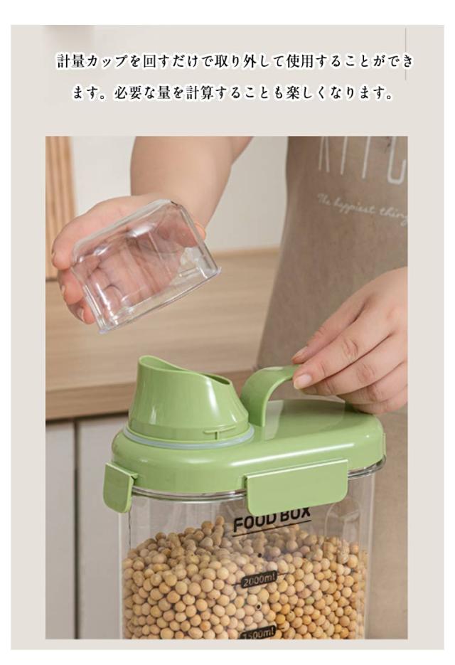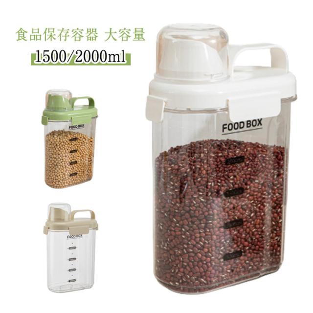| 食品保存容器 大容量 1500/2000ml キッチンや冷蔵庫の中をスッキリ整理してくれるだけではなく、湿気や乾燥から食材を守ってくれる保存容器。 豆、小麦粉、砂糖、コーヒー、米、ナッツ、スナックなど乾物を入れたり、または、ドッグフードやキャットフード等のペットフード入れとしても、洗濯洗剤容器としても使用できます。 注ぎ口が素早く安定した量を注ぎやすいように設計されています。物がこぼれる心配はありません。 計量カップを回すだけで取り外して使用することができます。必要な量を計算することも楽しくなります。 高品質で頑丈で耐久性があり安全素材を採用して、安心してお使えいただけます。 クリアなデザインで、パッと見で中身、食材の整理、残量の確認もしやすくなり、デザインと機能性を両立しました。 | |