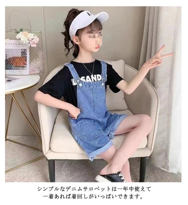 ポケット 140cm オーバーオール 子供服 女の子 2点セット セットアップ 120cm 半袖 韓国子供服 デニム ショートパンツ キッズ デニムサロペット 膝上 オールインワン ボトムス デニムオーバーオール 男の子 110cm tシャツ 130cm オーバーオール 150cm 160cm 170cm