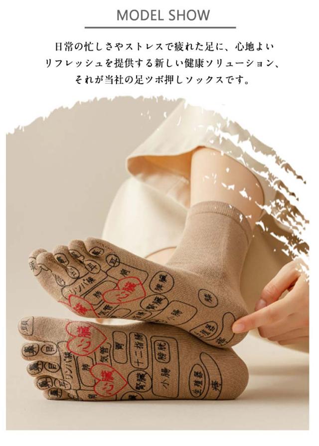 | 【足ツボ押しソックス】 【女性/男性用】 日常の忙しさやストレスで疲れた足に、心地よいリフレッシュを提供する新しい健康ソリューション、それが当社の足ツボ押しソックスです。 足裏には足ツボ箇所が細かく表示されており、これがまるで足裏にマッサージ師がそばにいるような感覚を生み出します。 足ツボの刺激は、日々の活動で酷使された足をやさしくほぐし、疲労を癒します。 ツボの位置は足裏に描かれているため、手軽に自分でアプローチでき、いつでもどこでも気軽にご利用いただけます。 靴下としての機能も兼ね備えており、通常の生活や仕事中でも着用可能。いつでも足元から心地よいケアを受けられます。 フリーサイズなのでどなたでも快適な履き心地を提供します。 | |