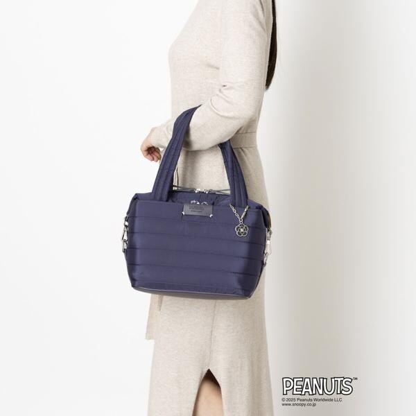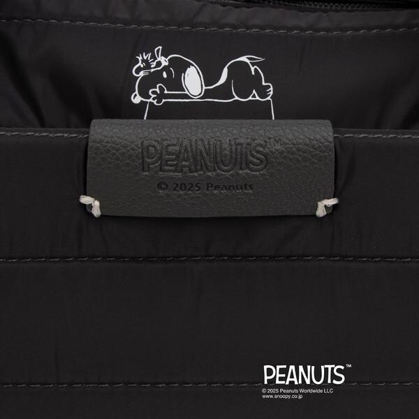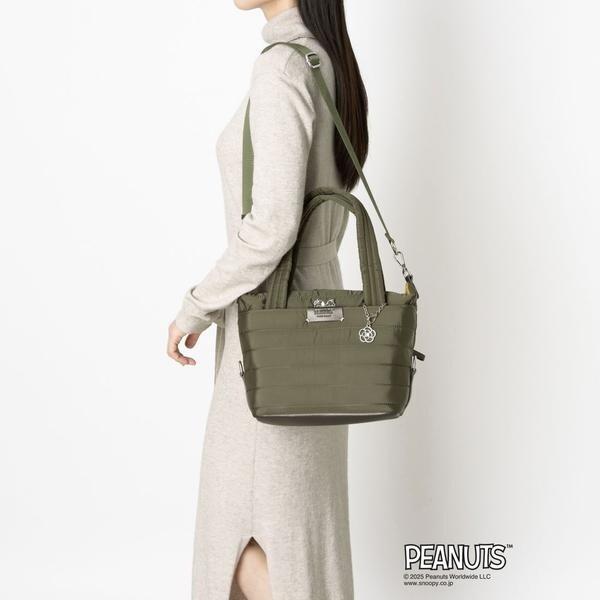大人の遊び心をくすぐる、上品でチャーミングなコレクション。CLATHASから、世界中で愛される「PEANUTS」とのコラボレーションアイテムが登場です。スヌーピーの後ろ姿や、コミックから着想を得たリボンモチーフなど、さりげないディテールで遊び心をプラス。キャラクターアイテムでありながらも、CLATHASらしいエレガンスを纏った、大人にこそふさわしい仕上がりです。バッグとお財布は、セットで持っても統一感があり、コーディネートのアクセントとしてもおすすめです。CLATHASのバッグの中でも人気の高い「カペラ型」をベースに、軽やかなナイロン素材で仕上げたデザイン。カラーはブラック・カーキ・パープルの3色展開で、幅広いスタイルにマッチします。外側には、スヌーピーのドッグハウスをイメージしたキルティングをあしらい、キャッチーながらも上品なアクセントに。内側には、明るいイエローの裏地を採用し、開くたびに気分が高まるような遊び心を添えました。2way仕様で、ハンドバッグとしてもショルダーとしても使えるのが嬉しいポイント。内外にポケットがあり収納力も抜群で、荷物が多い日にも頼れるアイテムです。日常使いはもちろん、ピクニックや旅行などアクティブなシーンにも活躍します。・A4対応(22×31cm):×・長財布(10×20cm):〇・ペットボトル横向き(500ml):〇・ペットボトル縦向き(500ml):〇【メーカーサイズ寸法(実寸)】FREE : 重さ:440g, 高さ:24.5cm, 幅:26−40cm, 底マチ:12.5cm, 持ち手高さ:16cm, ショルダーストラップの長さ:64−120cm