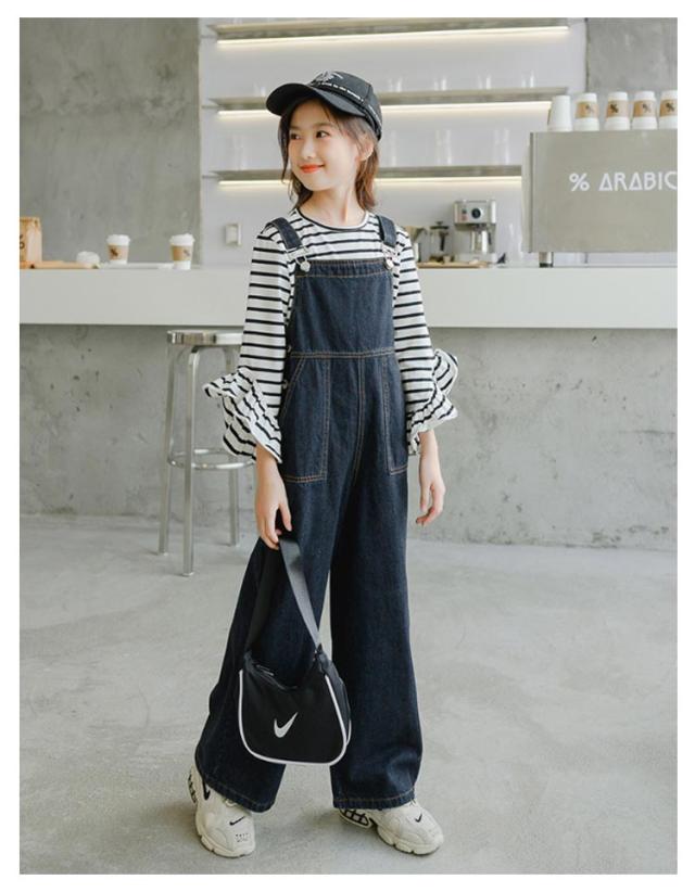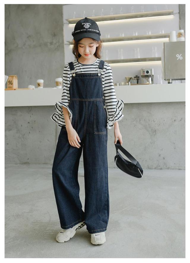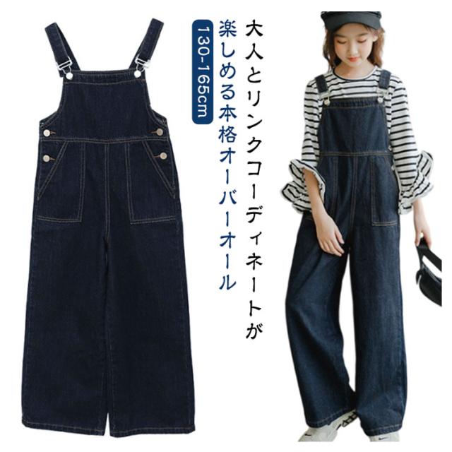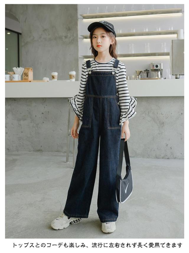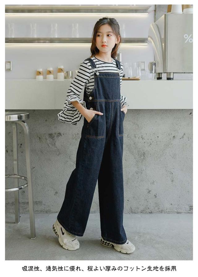 キッズ デニムサロペット デニムパンツ サロペットパンツ 女の子 子供 170 ワイドパンツ ゆったり 韓国 子供服 かわいい ロングパンツ オールインワン 長ズボン 春 ガールズ 秋 cm ジーンズ 夏 ワイド 120 130 140 150 160 オーバーオール デニム 小学生 中学生