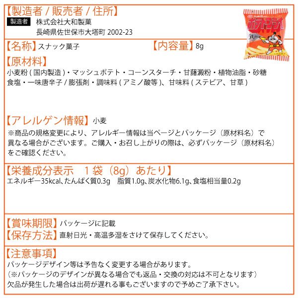 大和製菓 ポテトフライ 8g (30袋)おつまみ お酒のあて お菓子 おやつ 駄菓子