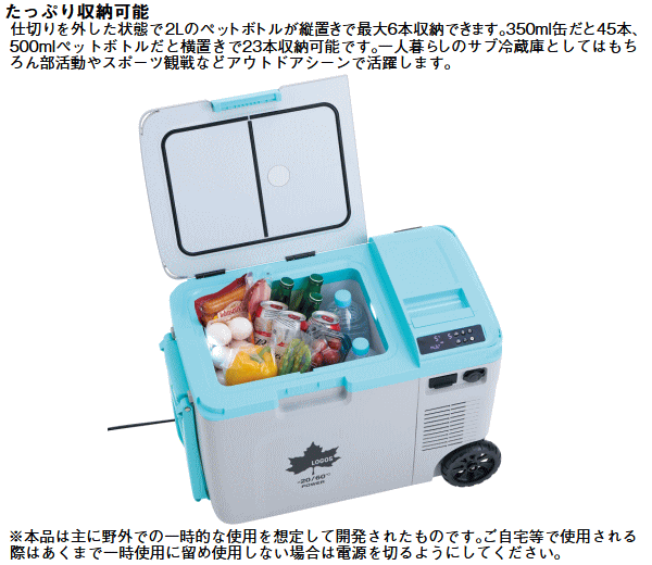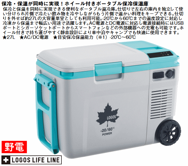 ロゴス 冷凍冷蔵庫 ポータブル保冷保温庫 ポータブル温冷庫 セカンド冷蔵庫 保冷 保温 AC/DC 2電源対応 LOGOS(野電)エレキャン・温冷/冷凍庫 27-BF(-20℃/60℃ ホイール)74175095