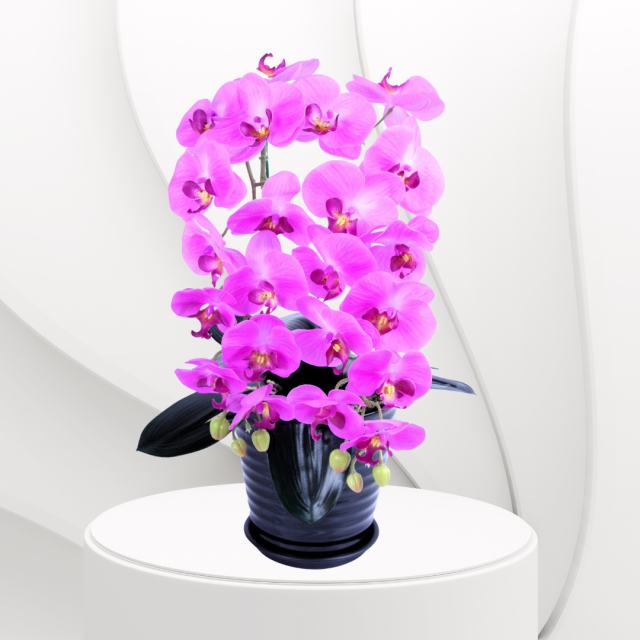 アートフラワー、造花、胡蝶蘭9輪2本立て(手触りの良い花びら)