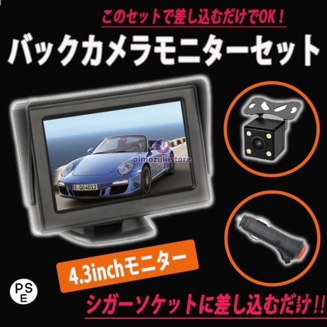 シガソケに差し込むだけでOK 簡単接続 LED バックカメラ モニター シガーソケット 4.3インチモニター 全セット 広角レンズ 取付超簡単