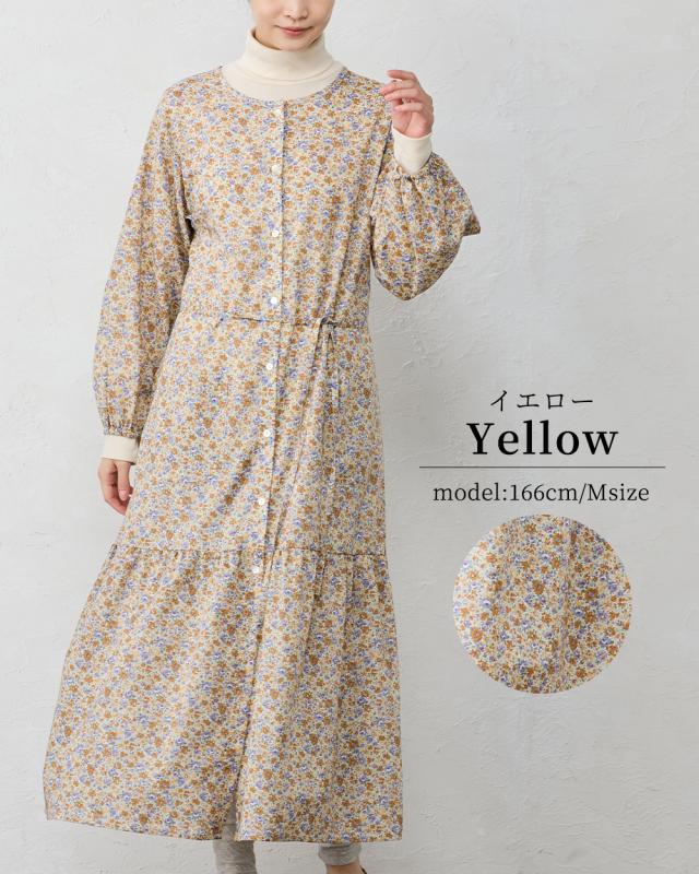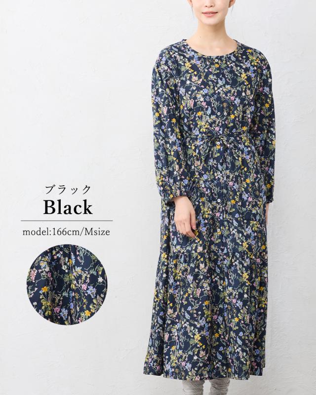 ポイント消化 送料無料 ポイント消費 春 夏 秋 冬 レディース 花柄プリントワンピース 長袖 ポケット 吸湿性 通気性 自然素材 重ね着 レイヤード綿 綿100% コットン コットン100% 天然素材 花柄 植物 着回し イエロー サックス パープル ブラック 通勤 通学 ナチュラル カジュアル フェミニン 婦人服 女性 服 ミセス ミセスファッション 40代 50代 レディースファッション ファッション 人気 通販 日本製 SPAN スパン
