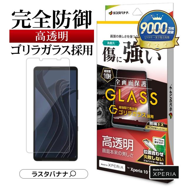Xperia10 VII ガラスフィルム 全面保護 高光沢 高透明 クリア ゴリラガラス採用 ホコリ防止 簡単貼り付けガイド 0.33mm 硬度10H エクスペリア10 マーク7 SO-52F SOG16 XQ-FE44 保護フィルム GG5161XP107 ラスタバナナ