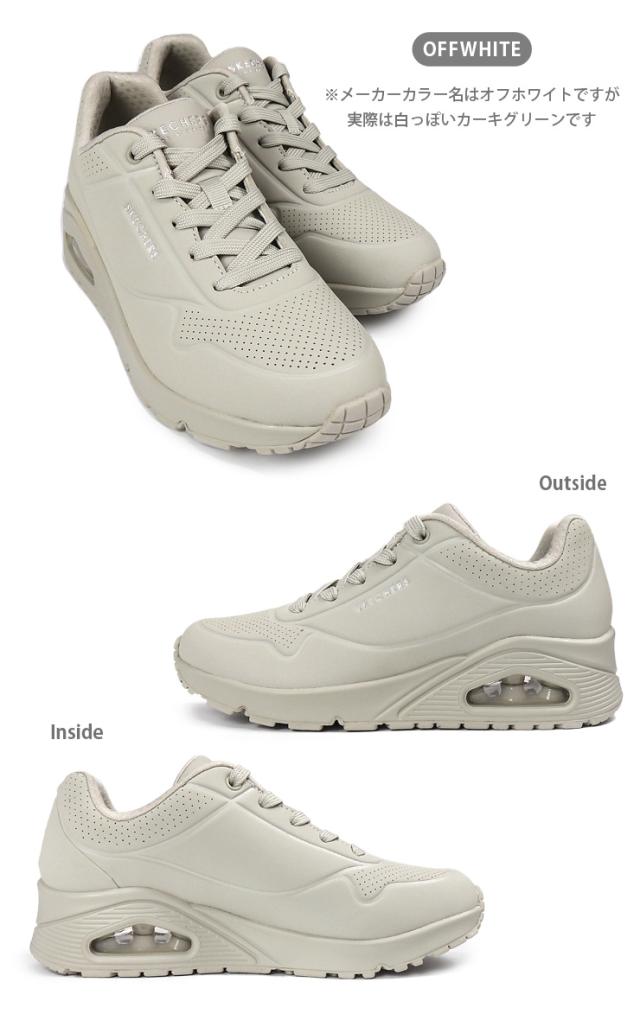 【箱アウトレット】スケッチャーズ ウノ スタンド オン エア ローカット スニーカー シューズ 23 23.5 24 24.5 レディース オフホワイト SKECHERS UNO-STAND ON AIR 73690 OFWT メモリーフォーム スケッチエア 白 OFFWHITE カーキ グリーン 靴 くつ sh2317