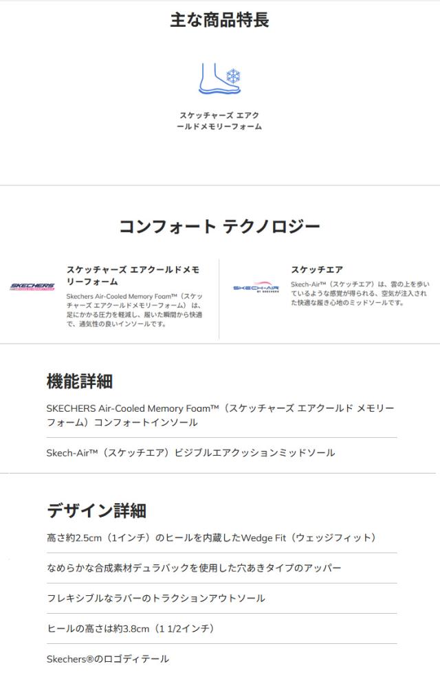 SKECHERS Air-Cooled Memory Foam(スケッチャーズ エアクールド メモリーフォーム)のインソールとSkech-Air(スケッチエア)ビジブルエアクッションミッドソールを搭載しています。