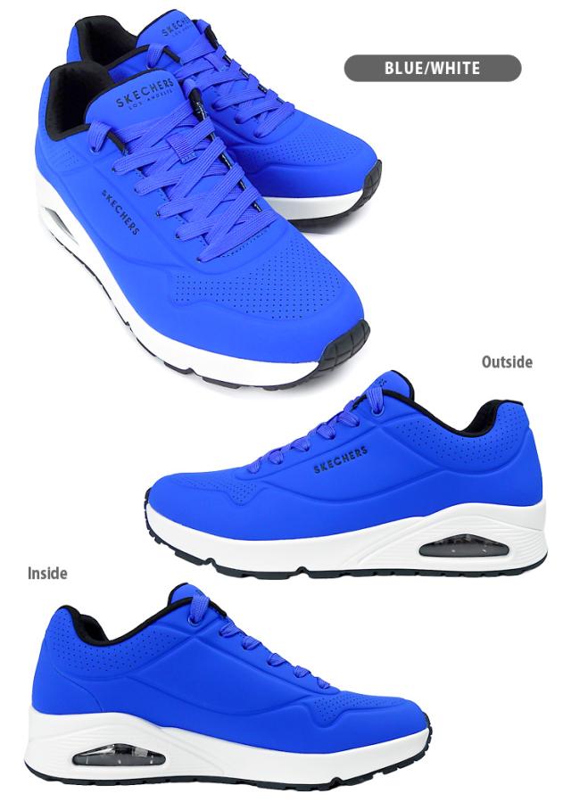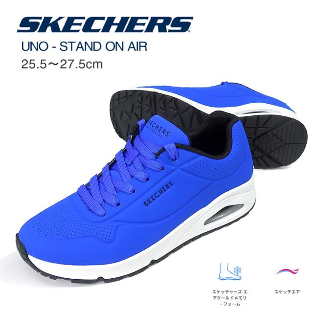【箱アウトレット】スケッチャーズ ウノ - スタンド オン エア メンズ スニーカー シューズ 25.5 26 26.5 27 27.5 ブルー/ホワイト 52458 BLW SKECHERS UNO-STAND ON AIR ローカット 男性 紳士 靴 くつ シンプル スポーティ メモリーフォーム 紐 青 白 sh2301