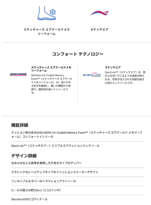 SKECHERS Air-Cooled Memory Foam(スケッチャーズ エアクールド メモリーフォーム)のインソールとSkech-Air(スケッチエアー)ビジブルエアクッションミッドソールを搭載しています。