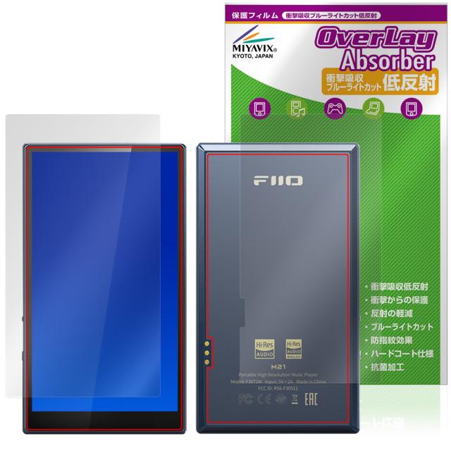 Fiio M21 表面 背面 フィルム OverLay Absorber 低反射 for フィーオ デジタルオーディオプレーヤー 衝撃吸収 ブルーライトカット 抗菌