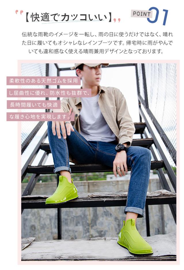 レインブーツ メンズ レインシューズ 防水 雨靴 ショートブーツ 短靴 軽量 防滑 厨房靴 作業靴 おしゃれ アウトドア 通勤 通学 梅雨対策 台風 晴雨兼用