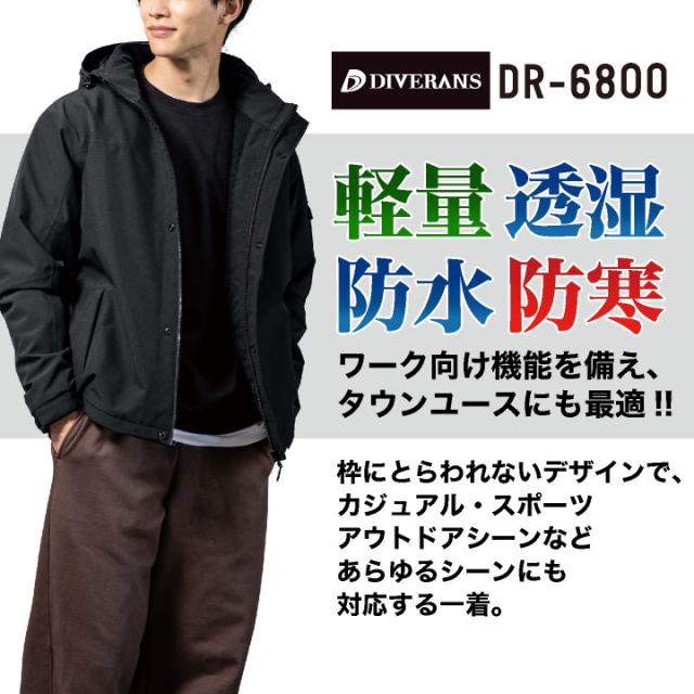 DIVERANS DR-6800 ストレッチ透湿防水 防寒ジャケット 軽量で透湿・防水・防寒機能を備えたウェアが登場! ワーク向け機能を備え、タウンユースにも最適なデザイン。