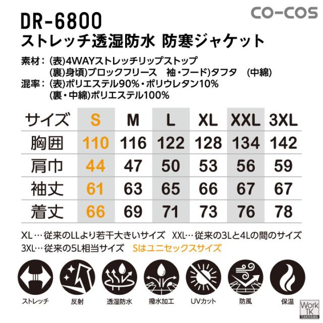 コーコス 防寒ジャケット マウンテンパーカー コート ダウン アウター ジャンパー レインウェア 暖かい 透湿 防水 撥水 中綿 防寒着 作業着 作業服 通勤 アウトドア 登山 釣り スポーツ カジュアル メンズ レディース 大きいサイズ cc-dr6800