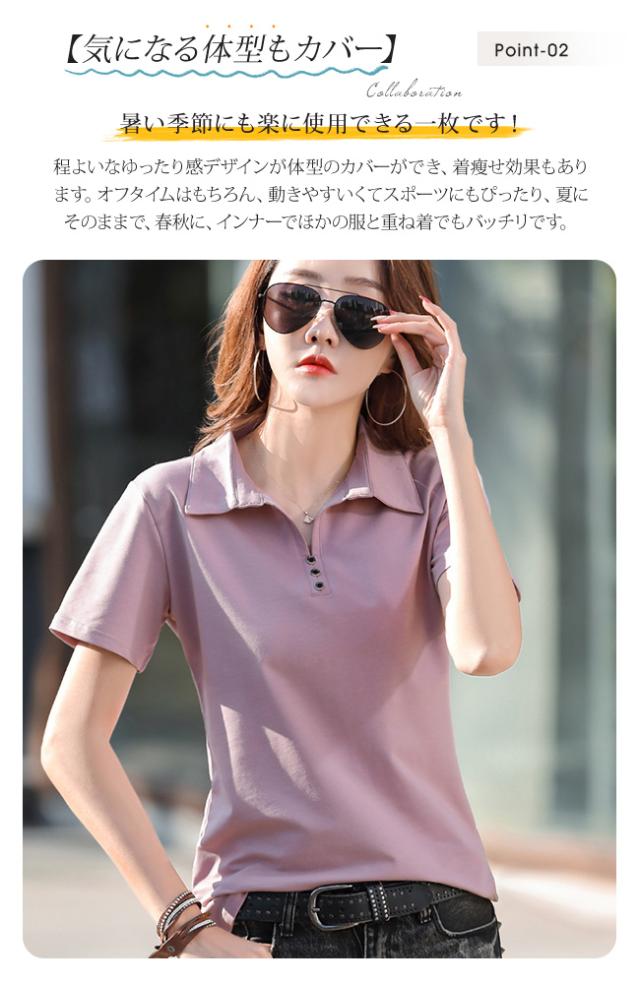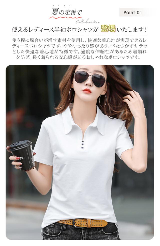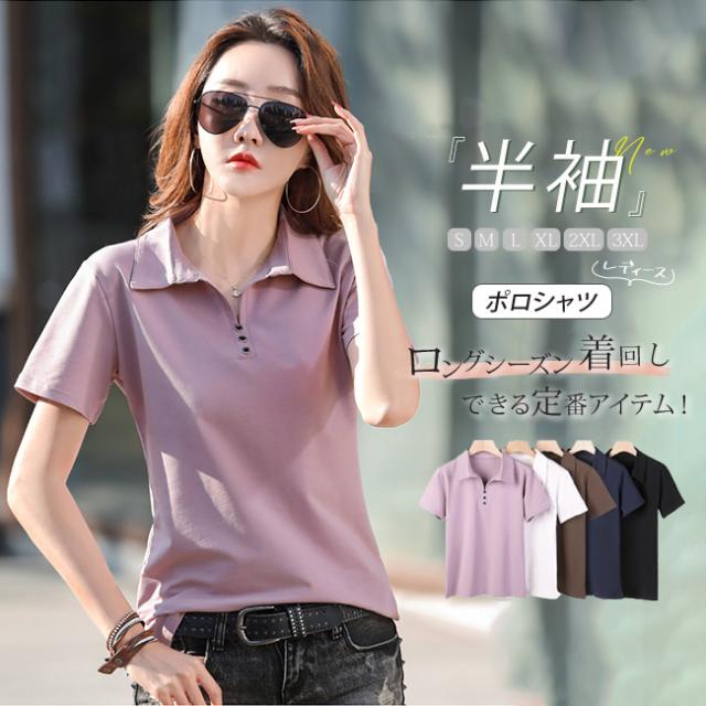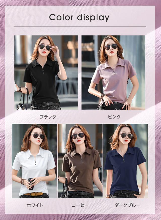 夏新作 ポロシャツ レディース 半袖 tシャツ 襟付き 無地 ゴルフウェア 夏 無地 薄手 綿 おしゃれ 大きいサイズ スポーツウェア テニス 普段着 通勤 春夏