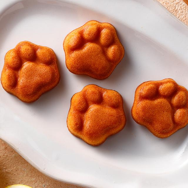 | カマンベールを練り込んだ薫り豊かなフィナンシェに、レモンピールを加え爽やかに仕上げた自慢の一品。ひっくり返せば、なんと!ネコシェフ印の肉球型!? | |