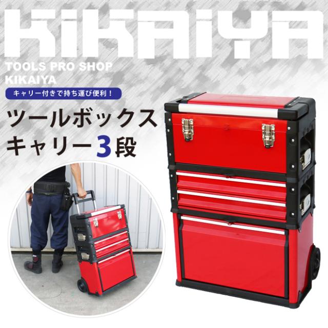 ツールボックスキャリー 3段 ツールチェスト キャスター付き キャビネット ハンドツール ツールステーション移動型ツールボックス KIKAIYA