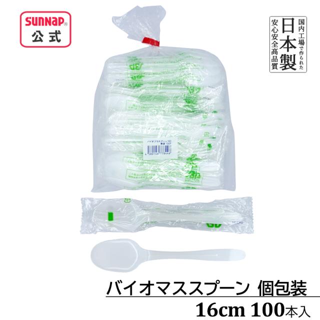 個包装 バイオプラスプーン 160mm 白 100本 日本製 使い捨て テイクアウト 業務 業P バイオマス バイオ 環境 エコ