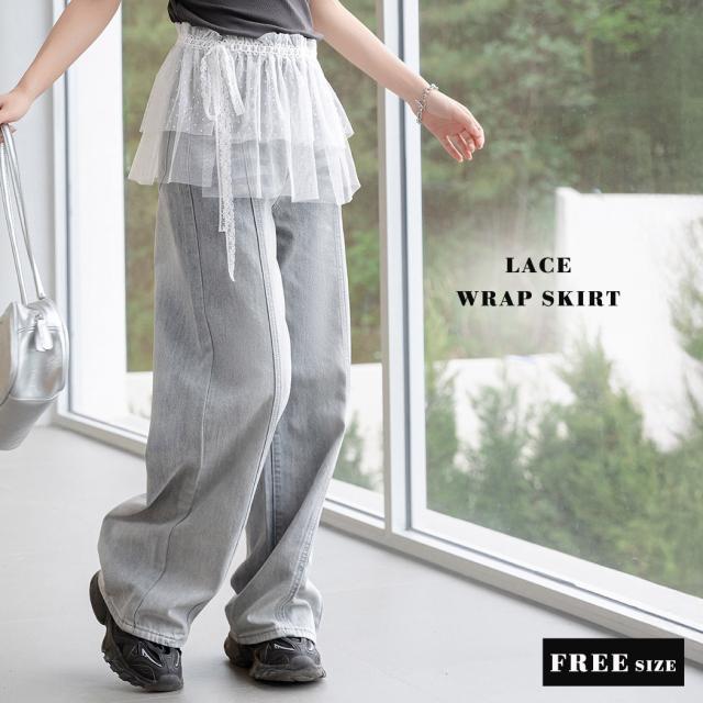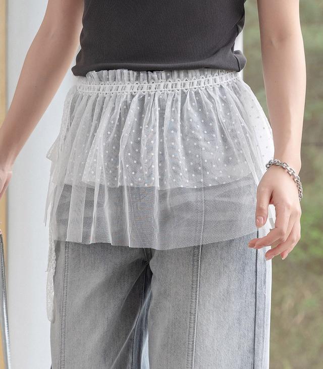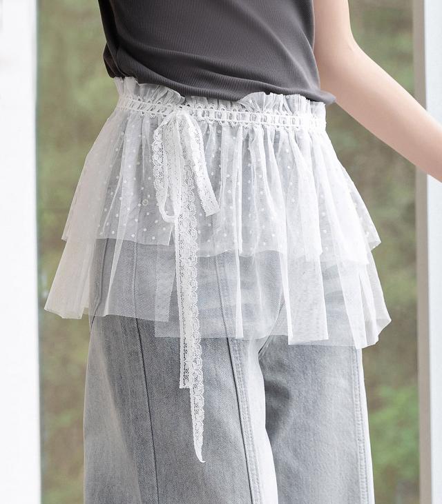 「一瞬でファンタジックに」ラップスカート レース レディース ボトムス ミニ丈 ミニスカ 透け シースルースカート ラップデザイン チュールレース ドット柄 フロッキー加工 シアー リボン 伸縮性 重ね着 レイヤード コーデ アイテム 白