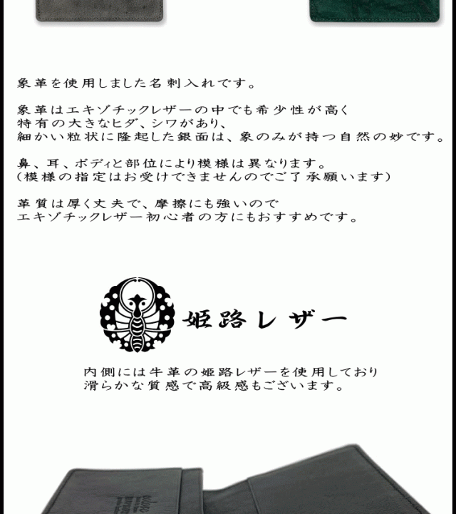 名刺入れ 象革 エレファントレザー 日本製 姫路レザー 本革 5172 ゾウ革