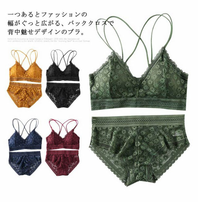 送料無料 ブラショーツセット レディース レース下着 ショーツ 下着セット 総レース 下着パンツ 上下セット クロスデザイン アンダーウェア 美背 ノンワイヤー バストアップ セクシー お洒落 上品 かわいい 薄手