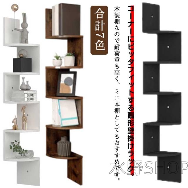 コーナーラック コーナーシェルフ 壁け 本棚 5段 ウォールラック ウォールシェルフ 木製 壁収納 壁掛け スリム シェルフ コンパクト 玄関 飾り棚 コーナーシェルフ 石膏ボード 北欧