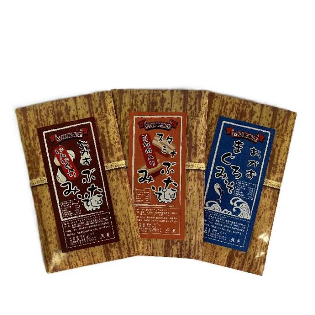 ぶたみそ(三枚肉入り、まぐろ入り、にんにく入り)各130g/袋 合計3袋 ・消費期限/賞味期限 製造後約半年(※パッケージに記載) ・保存方法:直射日光、高温多湿を避けて保存してください。 ※開封後は冷蔵庫に入れ早めにお召し上がり下さい。 |
