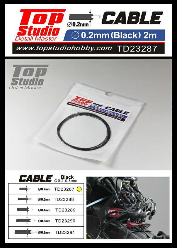 トップスタジオ TOP STUDIO ブラックケーブル ディティールアップ 線材 コード 0.2mm 2m TD23287 (blackcable)