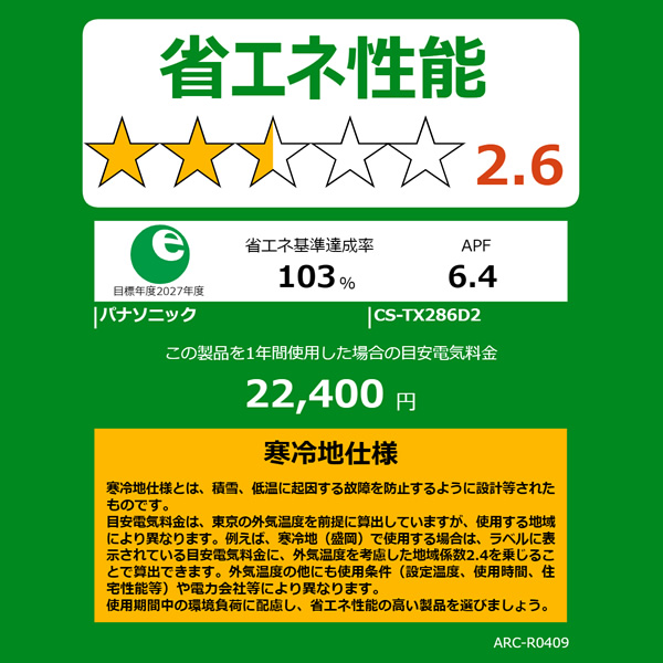 APF(通年エネルギー消費効率):6.4(JIS C 9612:2013)