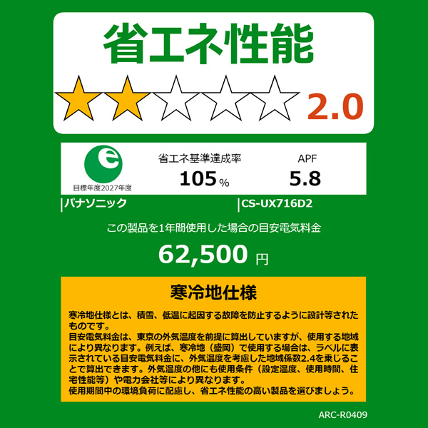 APF(通年エネルギー消費効率):5.8(JIS C 9612:2013)