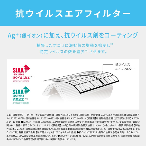 Ag+(銀イオン)に加え、抗ウイルス剤をコーティング。