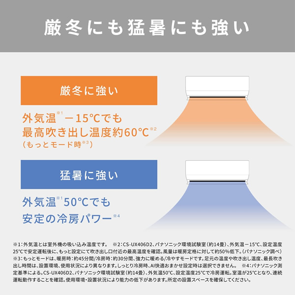 猛暑に強い:外気温50℃でも安定の冷房パワー