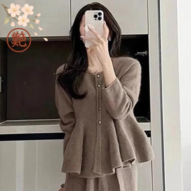 モード 大人 ロングスカート 上下セット 春 きれいめ 秋 カジュアル 冬 ペプラム セットアップ ペプラム エレガント ニット レディース ニットセットアップ おしゃれ