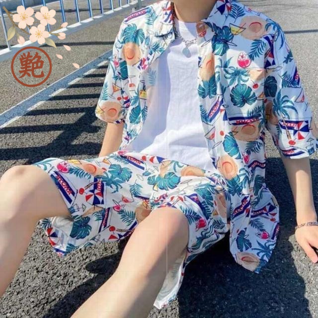 海 上下セット カップル服 メンズ シャツ 夏 アロハシャツ ペアコーデ 夏コーデ アロハシャツ ビーチウェア 短パン セットアップ 花柄シャツ 涼しい ハワイ旅行 旅行 薄手