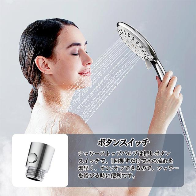 【ボタンタイプ】このシャワーヘッド水流制御バルブは押しボタンスイッチを備えており、水流を素早くオン/オフでき、使いやすく、毎回快適でパーソナライズされたシャワー体験を保証します。