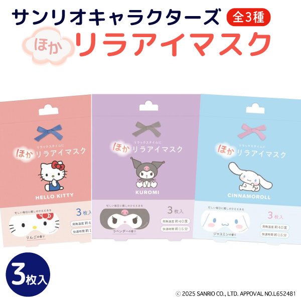 サンリオキャラクターズ ほかリラ アイマスク 3枚入 【メール便可】 ホットマスク 温かい 40度 快適 リラックス 癒やし 香りつき 疲れ目
