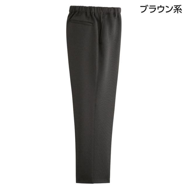 ユニチカトレーディング製の蓄熱保温素材【タクティウォーム(R)】を使用し、裏起毛の心地よい暖かさを感じられる紳士用冬物パンツです。ウエスト総ゴムでゆったり仕様。右後ろポケットは長財布がすっぽり入るように深くして工夫しています。