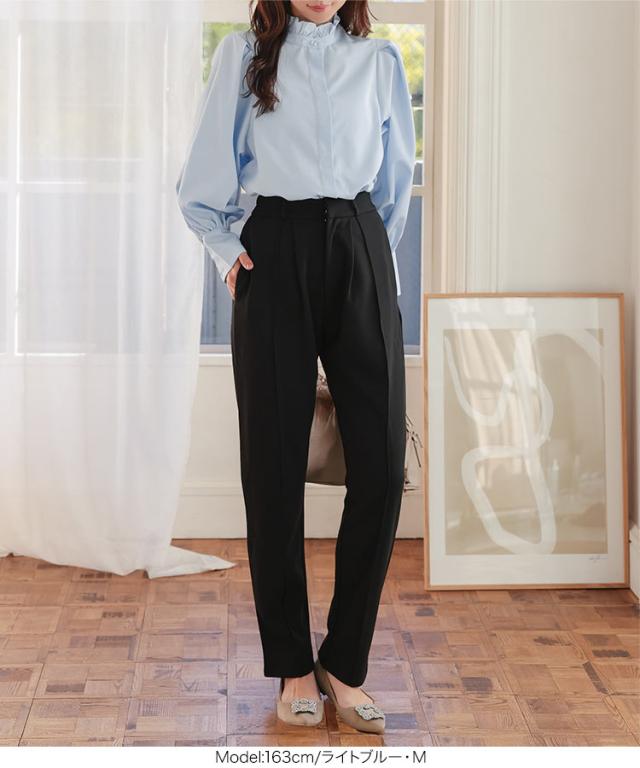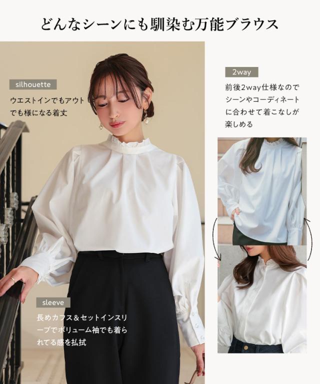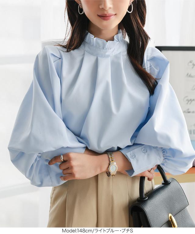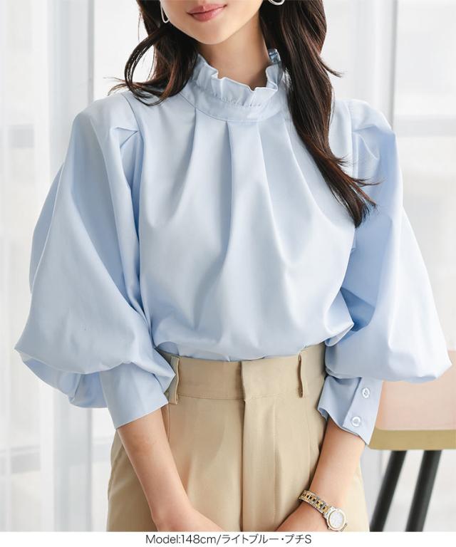 特別なハレの日やフォーマルシーンにふさわしい、上品で洗練された印象のセレモニーブラウス。首元のさりげないフリルとふんわりとしたスリーブが女性らしさを引き立てながら、気になる体型もさりげなくカバーしてくれます。前後2way仕様で着回し力が高く、ジャケット・ジレ・ベストのインナーとしてはもちろん、単品でも着映えする万能アイテム。セレモニーにはもちろん、きれいめなカジュアルスタイルにも取り入れやすく、幅広いシーンで活躍します。【素材・サイズ感】程よいゆとりで体のラインを拾いにくいシルエット。ふんわりとしたスリーブが気になる二の腕をさりげなくカバーし、動きやすさも兼ね備えています。ボトムスとのバランスも取りやすく、裾出しでもインでもすっきりと着こなせるのが魅力。4サイズ展開で自分の体型にぴったりのサイズを選べ、より美しいシルエットで着こなせます。※キャンセル/変更不可※※お届けまでの日程について