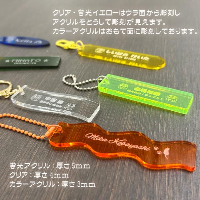 お名前やメッセージを刻める、オリジナル名入れアクリルキーホルダーです。