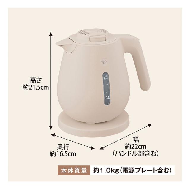 お湯を使いたいときにすぐに沸く、コロンとかわいらしい形状の電気ケトル。【1.0L】