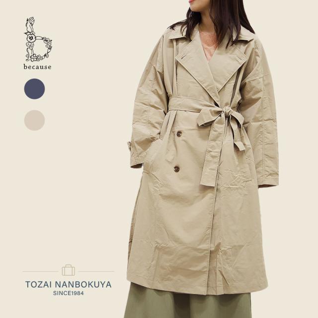 because ビコーズ オーバートレンチコート レイングッズ レインコート b-730035 レディース 雨 お出かけ 上品 大人 財布 帽子 アパレル ナイロン100%