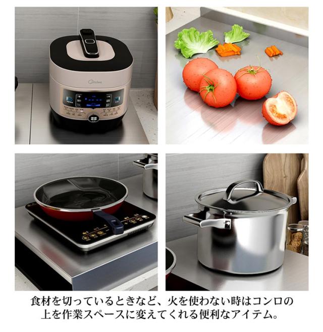 ガスコンロカバー コンロ上 作業台 作業スペース ガスコンロ 収納 一時置き 大きめ キッチン 狭い レンジカバー コンロカバー 厚さ1mm ステンレス 鋼 お手入れが簡単 台所 カバー ケース スマート シンプル 電磁調理器ラック カバー