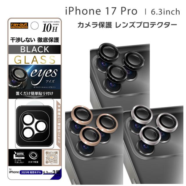 iPhone17Pro 6.3インチ カメラ保護 レンズプロテクター eyes 硬度10H アイフォン カメラレンズ保護 ブラック ゴールド シルバー メール便送料無料