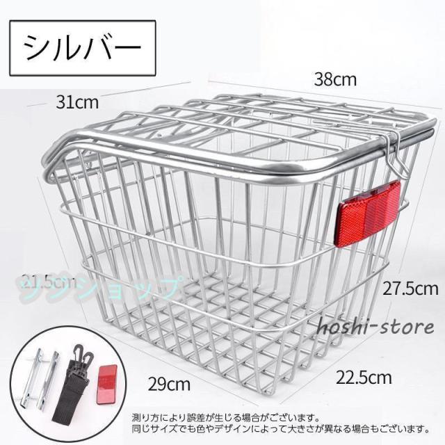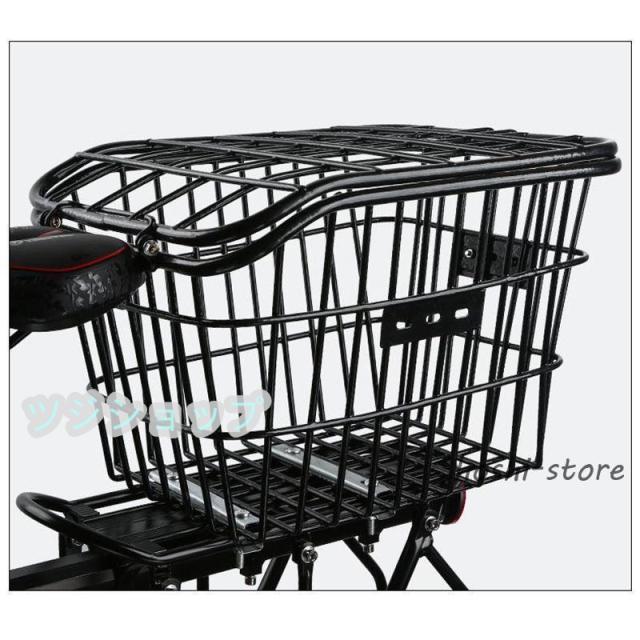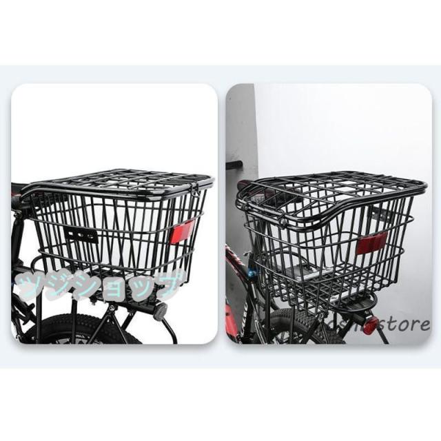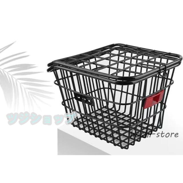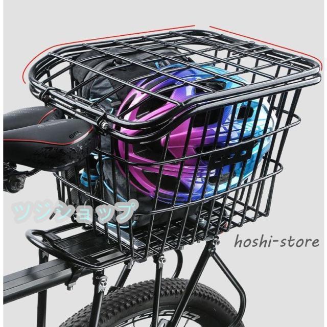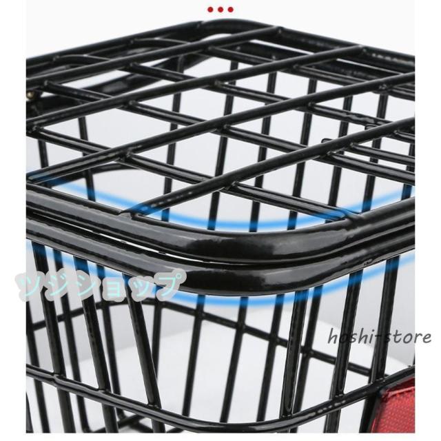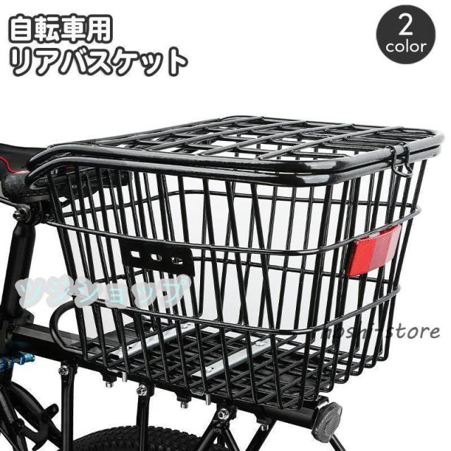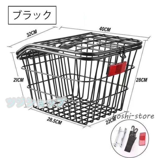 自転車用カゴ リアバスケット 後ろカゴ リアかご フタ付き 蓋 ふた 荷台設置 荷物 買い物 通勤 通学 スチール 大容量 固定式 け ブラック