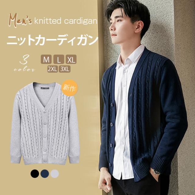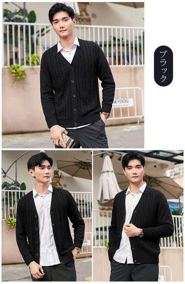 秋新作 ニットカーディガン メンズ Vネック メンズ セーター ビジネス ケーブル編み 綿100 秋冬 メンズ 服 厚手 コットンカーデ 春秋服 長袖 冬服 メンズ アウター