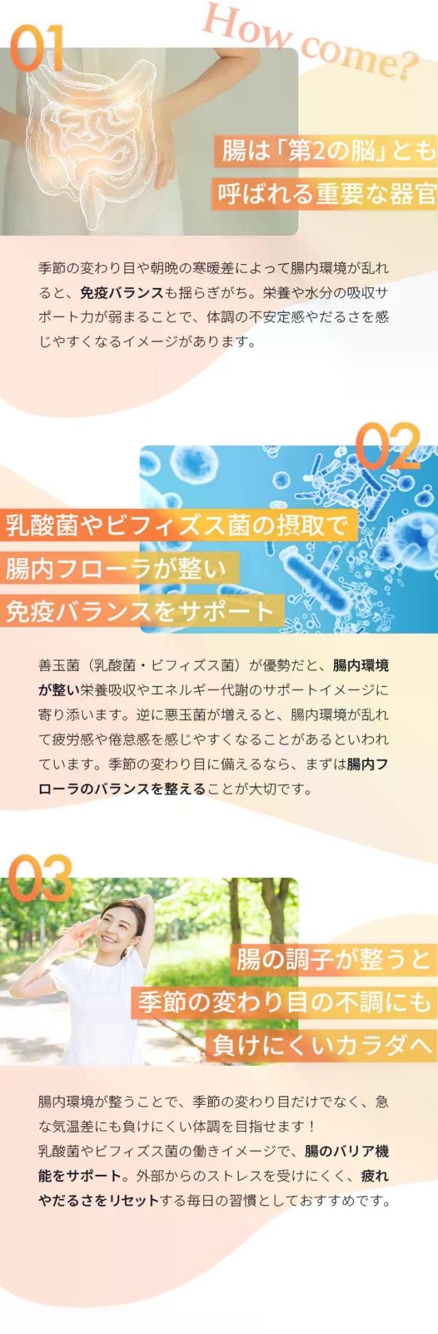 これまで別々に摂取しなければならなかった体内環境のための3つの成分を、