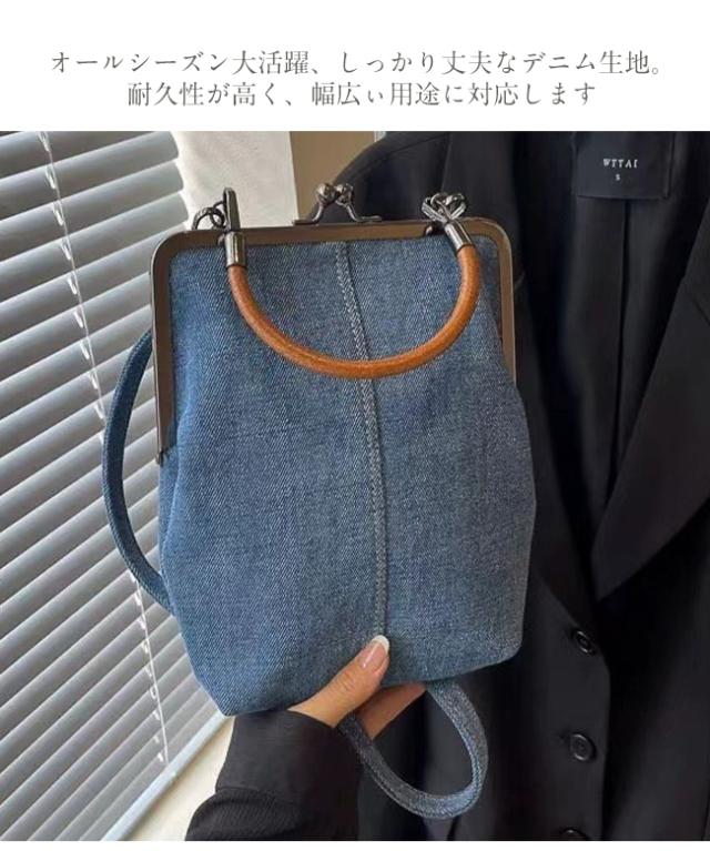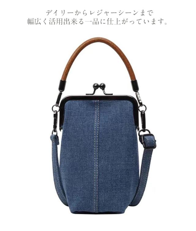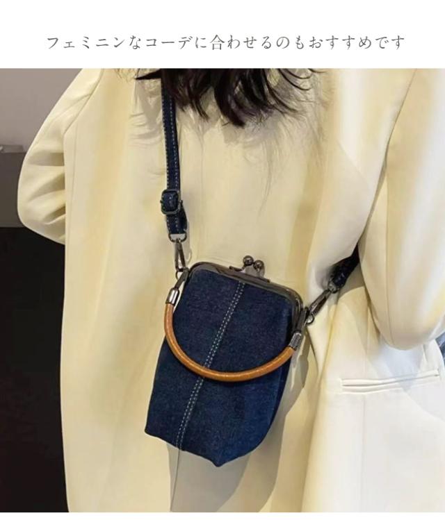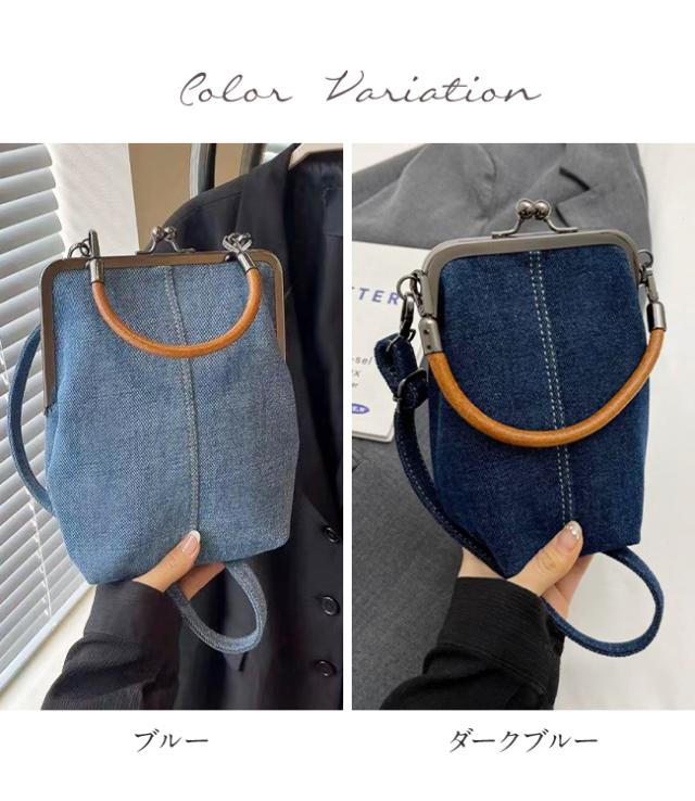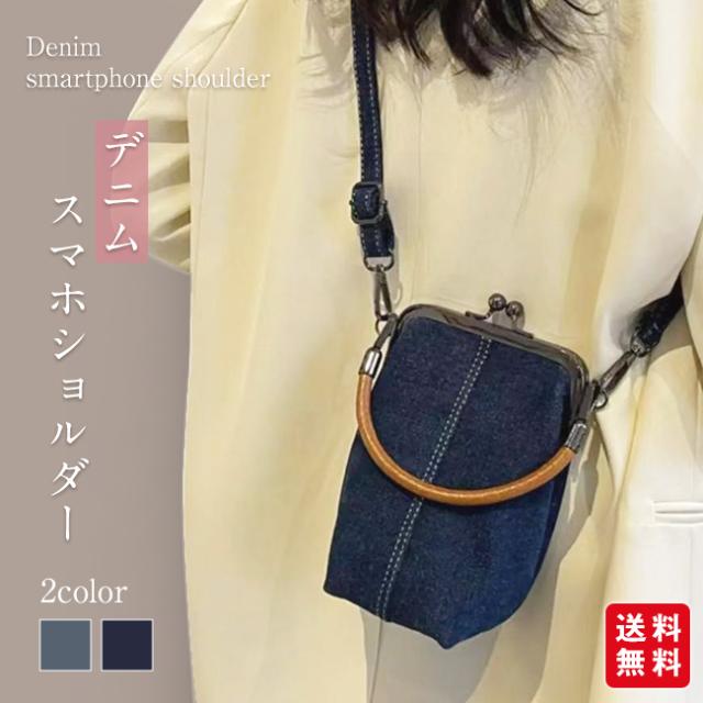 スマホポーチ スマホショルダー デニムバッグ レディース ポシェット がま口 斜め掛け 手提げ 縦型 ストラップ付 長さ調節可能 取り外せる 軽量